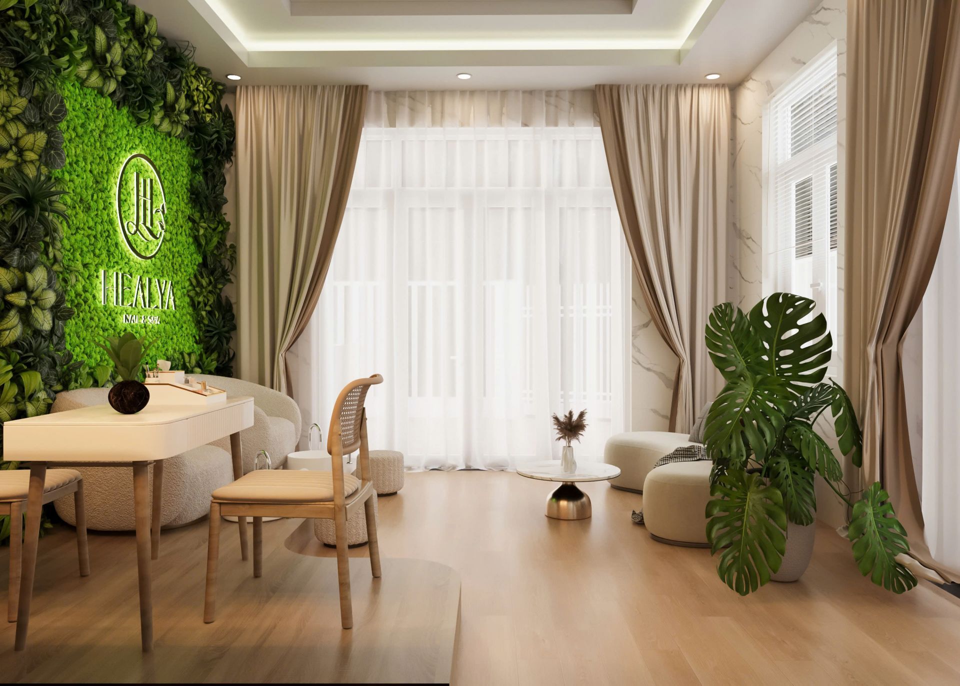 Healya’s Spa Nail khoác trên mình chiếc áo thiết kế theo phong cách hiện đại pha lẫn một chút chất riêng. Dưới sự kết hợp của những đường nét mạnh mẽ, đối xứng cùng kết cấu vững chắc tạo nên một không gian sống bền vững và phóng khoáng.