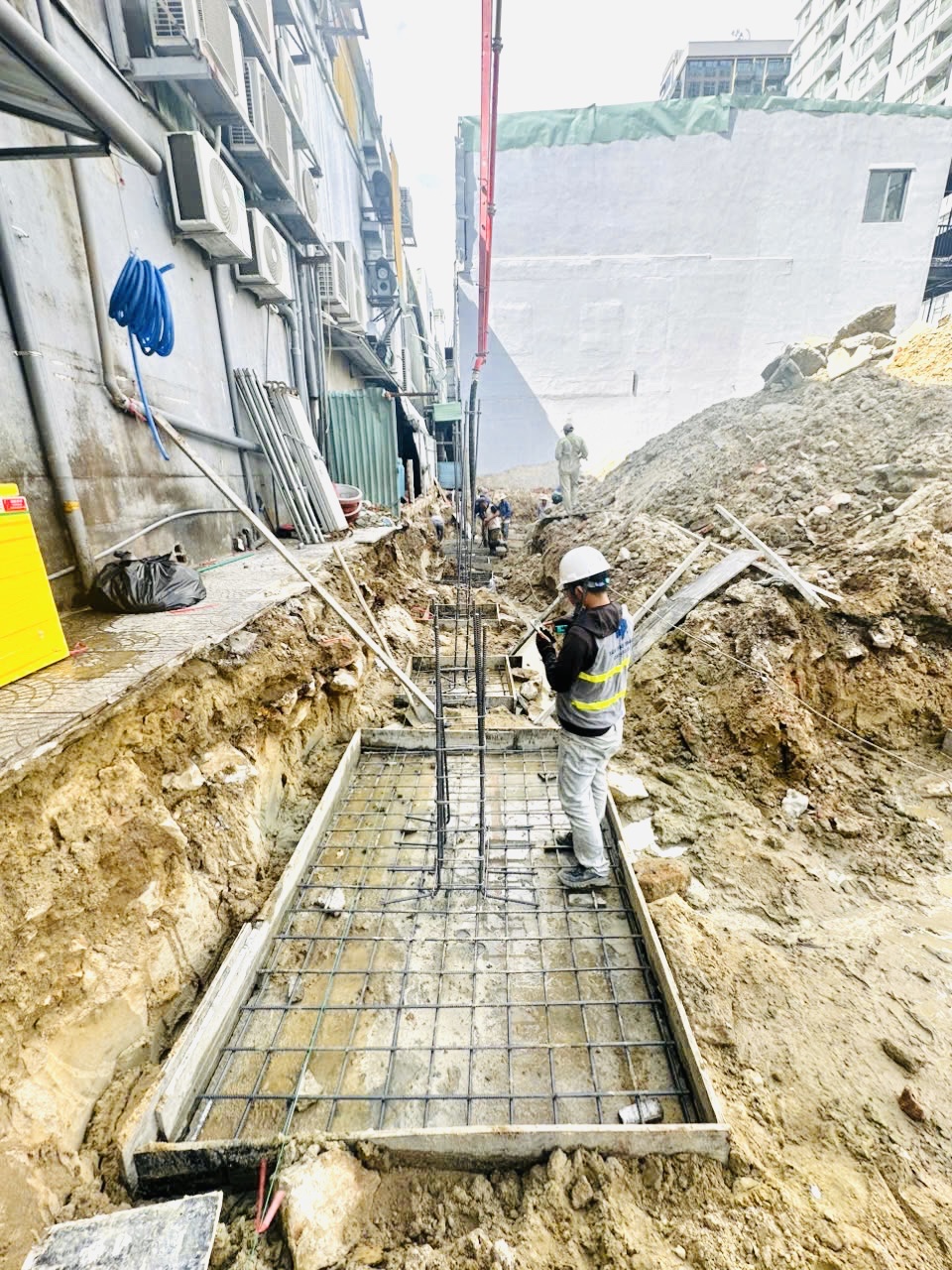Bê tông đà kiềng (đã lắp đặt bu lung liên kết trước khi đổ bê tông)