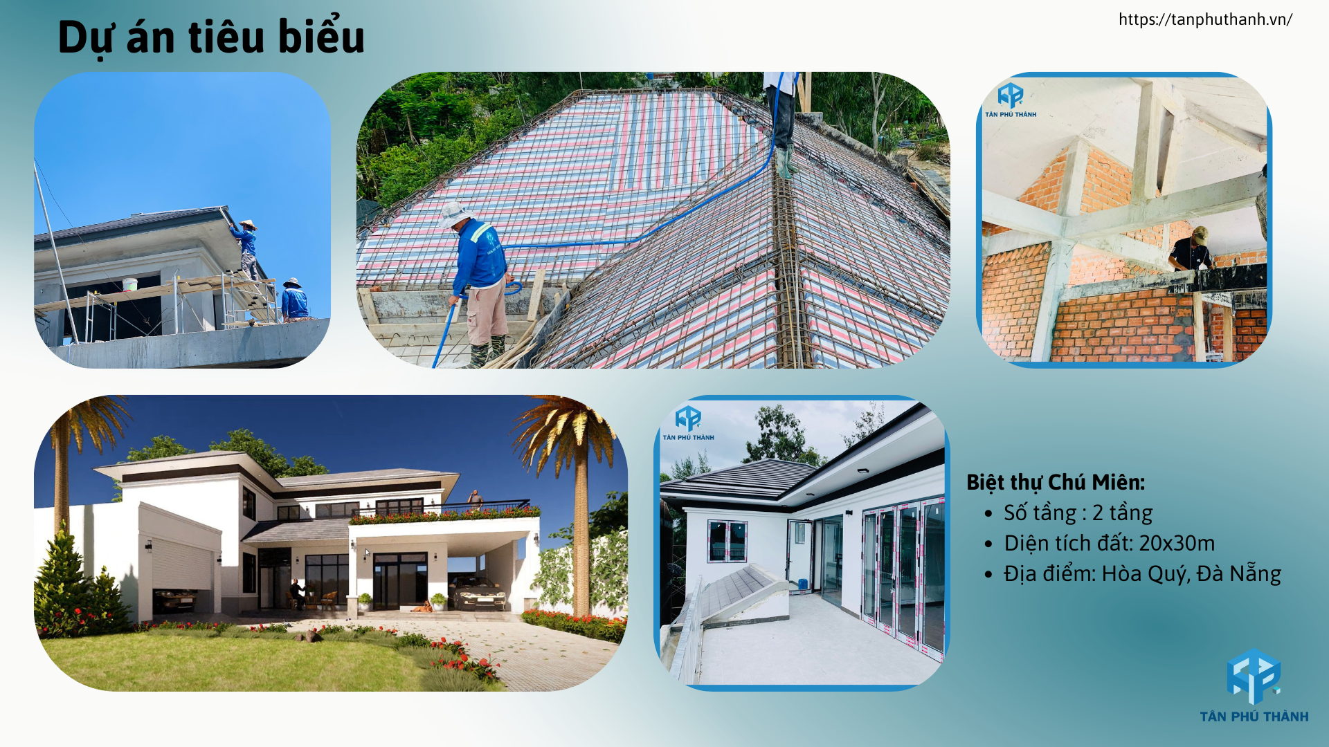 Công ty xây dựng Tân Phú Thành là một trong những đơn vị thi công xây nhà trọn gói uy tin nhất tại Đà Nẵng. Công ty luôn nỗ lực hết mình và không ngừng cố gắng để mang đến những công trình chất lượng cùng với đó là chi phí tối ưu nhất. Với phương châm hoạt động “Uy tín, Chất lượng, Hiệu quả”, công ty không ngừng thay đổi, cải thiện nhằm đem đến sự hài lòng tối đa cho khách hàng. Đội ngũ cán bộ, công nhân viên luôn cập nhật kiến thức mới, nâng cao trình độ chuyên môn và áp dụng những công nghệ hiện đại nhất, giúp quá trình thi công đạt hiệu quả hơn.
