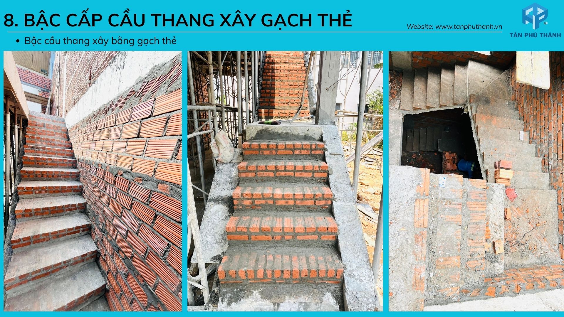 8. Bậc cầu thang xây bằng gạch thẻ