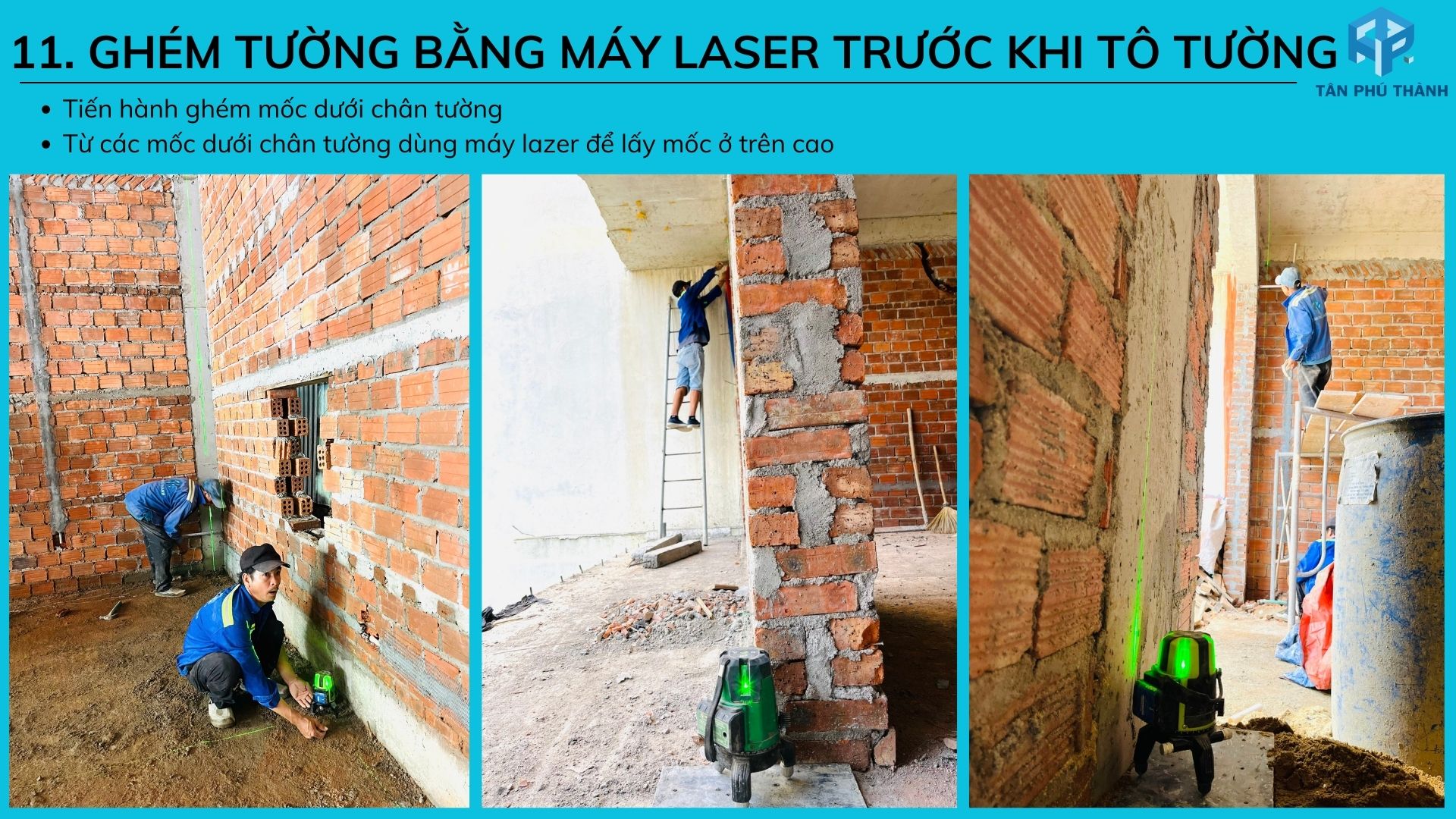 11. Ghém tường bằng máy Laser trước khi tô tường