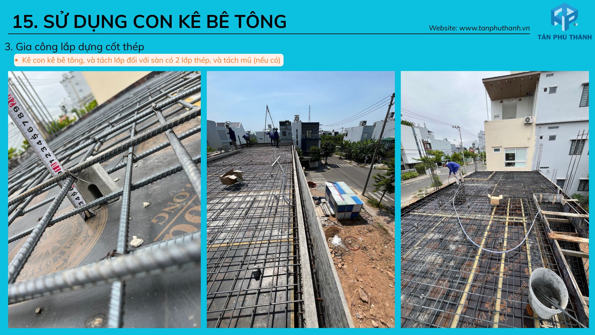 15. Kê thép sự dụng toàn bộ con kê bê tông