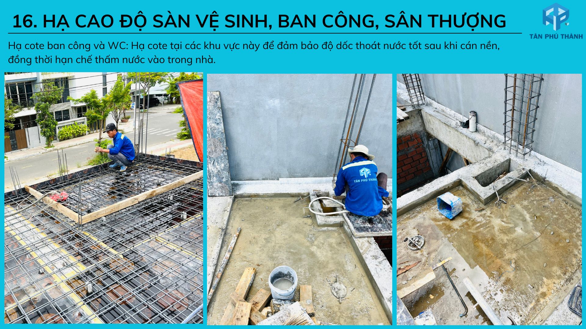 16. Hạ cao độ sàn vệ sinh, ban công, sân thượng: