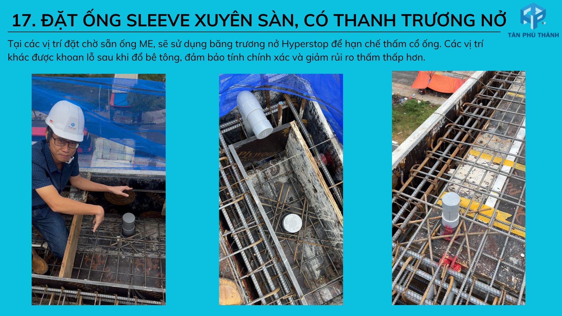 17. Đặt ống sleeve xuyên sàn, có thanh trường nở