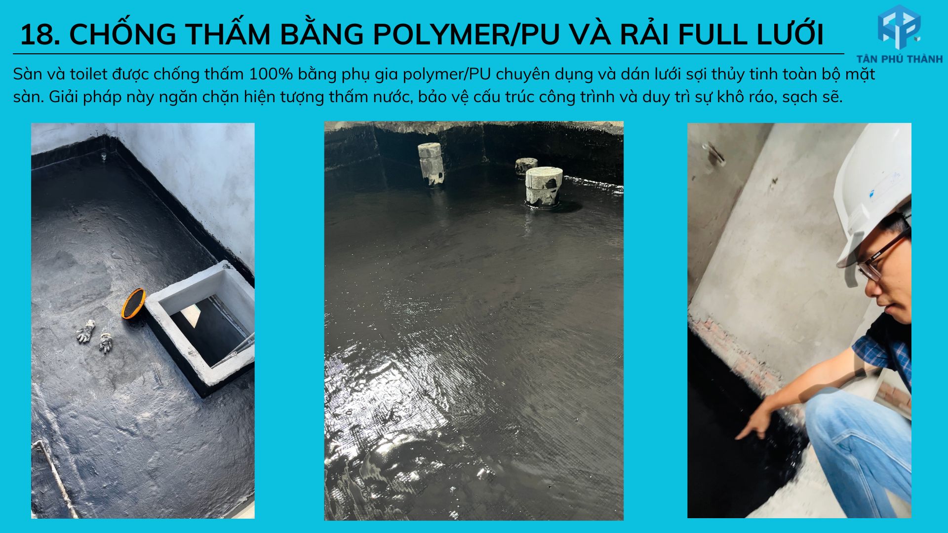 18. Chống thấm sàn bằng Polymer/PU và rải lưới thủy tinh toàn bộ sàn