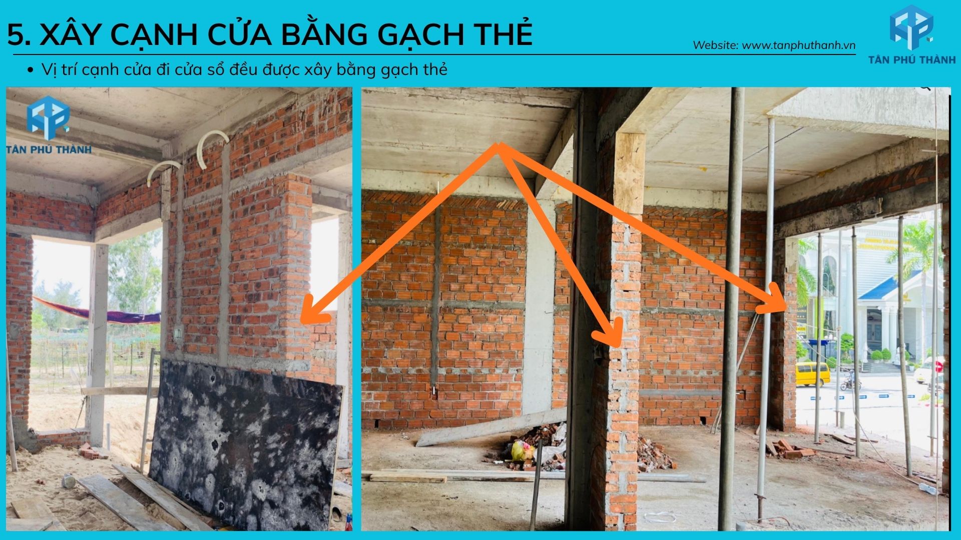 5. Xây cạnh cửa bằng gạch thẻ