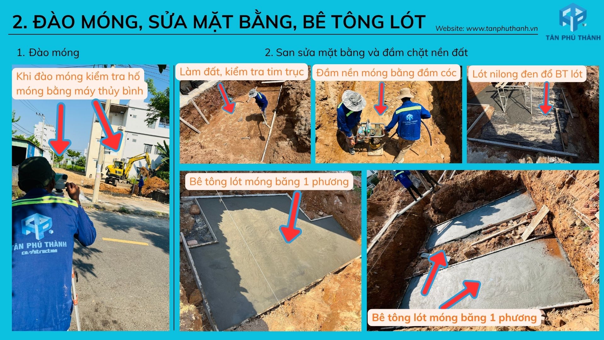 - Đào móng, san sửa mặt bằng và đổ bê tông lót