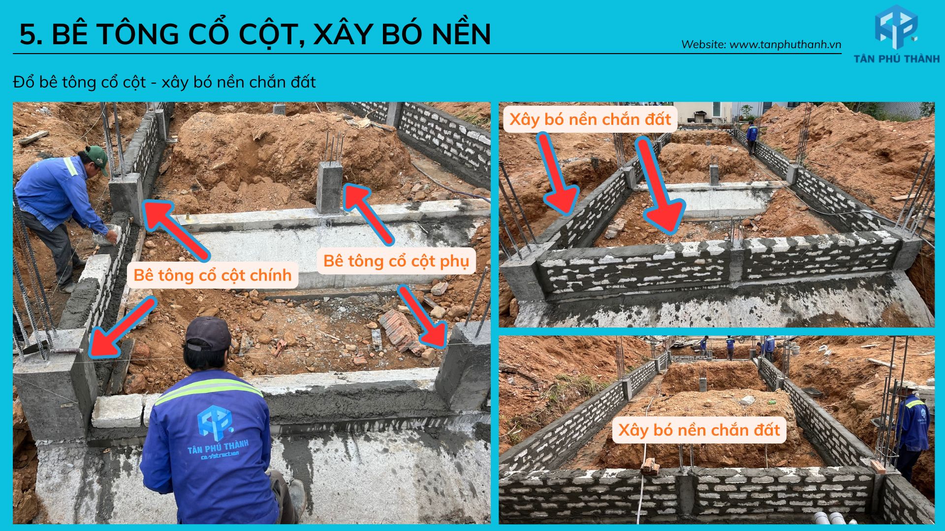 5. Bê tông cổ cột, xây bó nền giữ đất