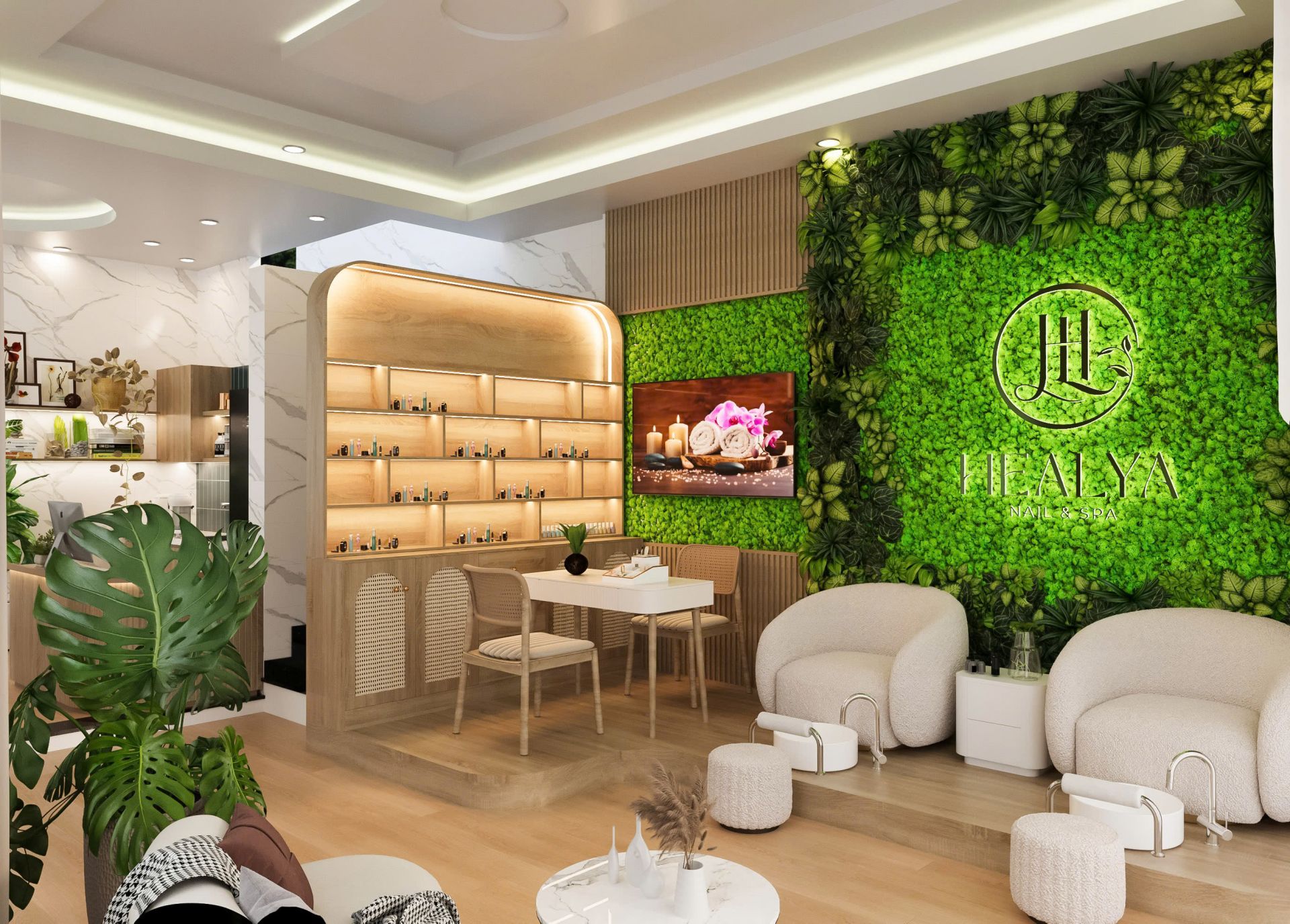 Healya’s Spa Nail khoác trên mình chiếc áo thiết kế theo phong cách hiện đại pha lẫn một chút chất riêng. Dưới sự kết hợp của những đường nét mạnh mẽ, đối xứng cùng kết cấu vững chắc tạo nên một không gian sống bền vững và phóng khoáng.