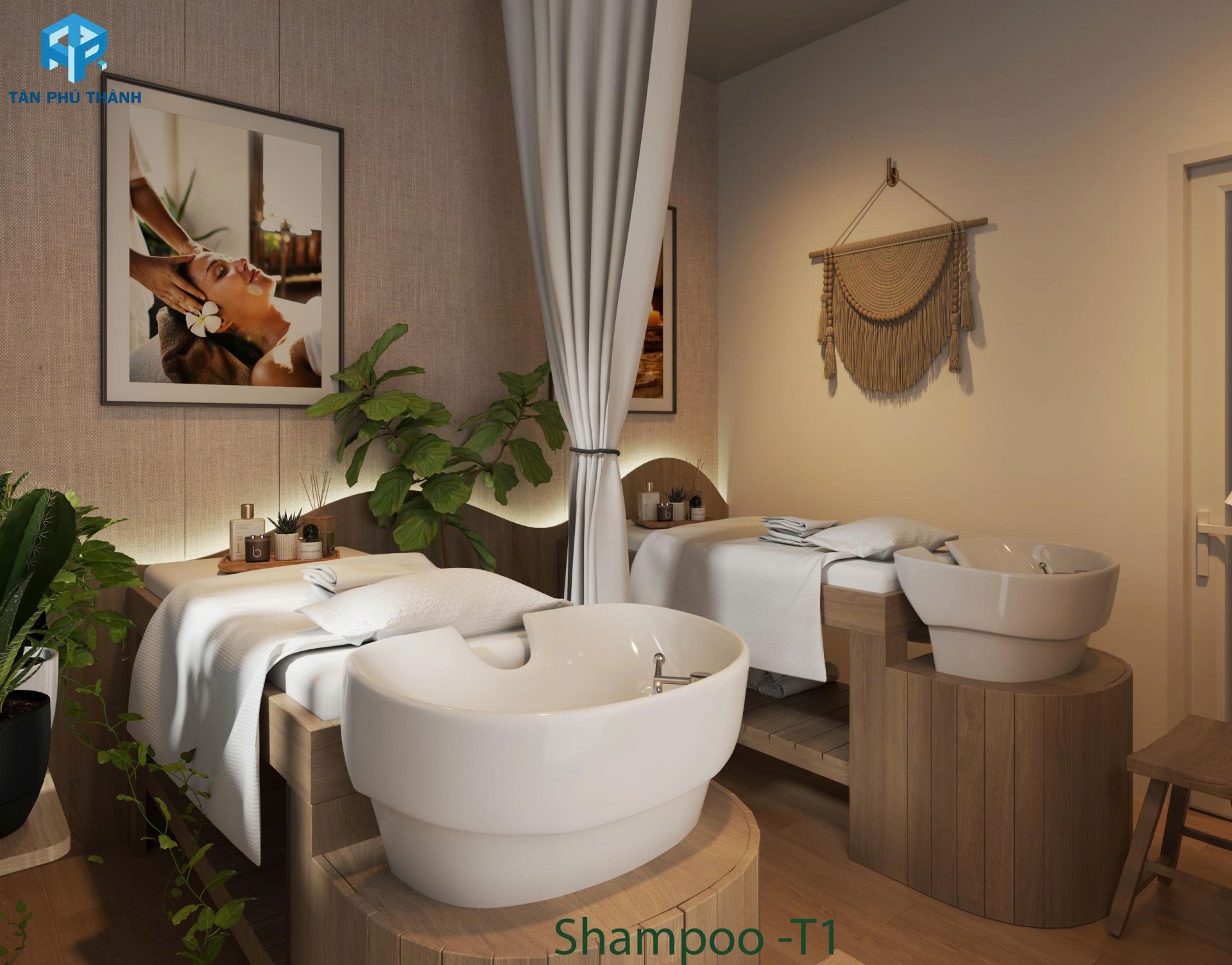 Tầng 1 của Healya’s Spa Nail được bố trí làm khu vực kinh doanh với các dịch vụ như: spa, nail, gội đầu thư giãn. Vì thế, để mang đến cho khách hàng những trải nghiệm mới mẻ, thư giãn ngay trong phút giây đầu tiên, các KTS TÂN PHÚ THÀNH đã đầu tư thiết kế sảnh đón tiếp một cách kỹ lưỡng. Kiến trúc của không gian này được lấy cảm hứng từ phong cách địa trung hải với những đường cong tinh tế, mái vòm cao. Chúng gợi nên sự lãng mạn và phóng khoáng, từ đó mang đến cảm giác thư giãn cho những vị khách đặt chân đến Healya’s Spa Nail.