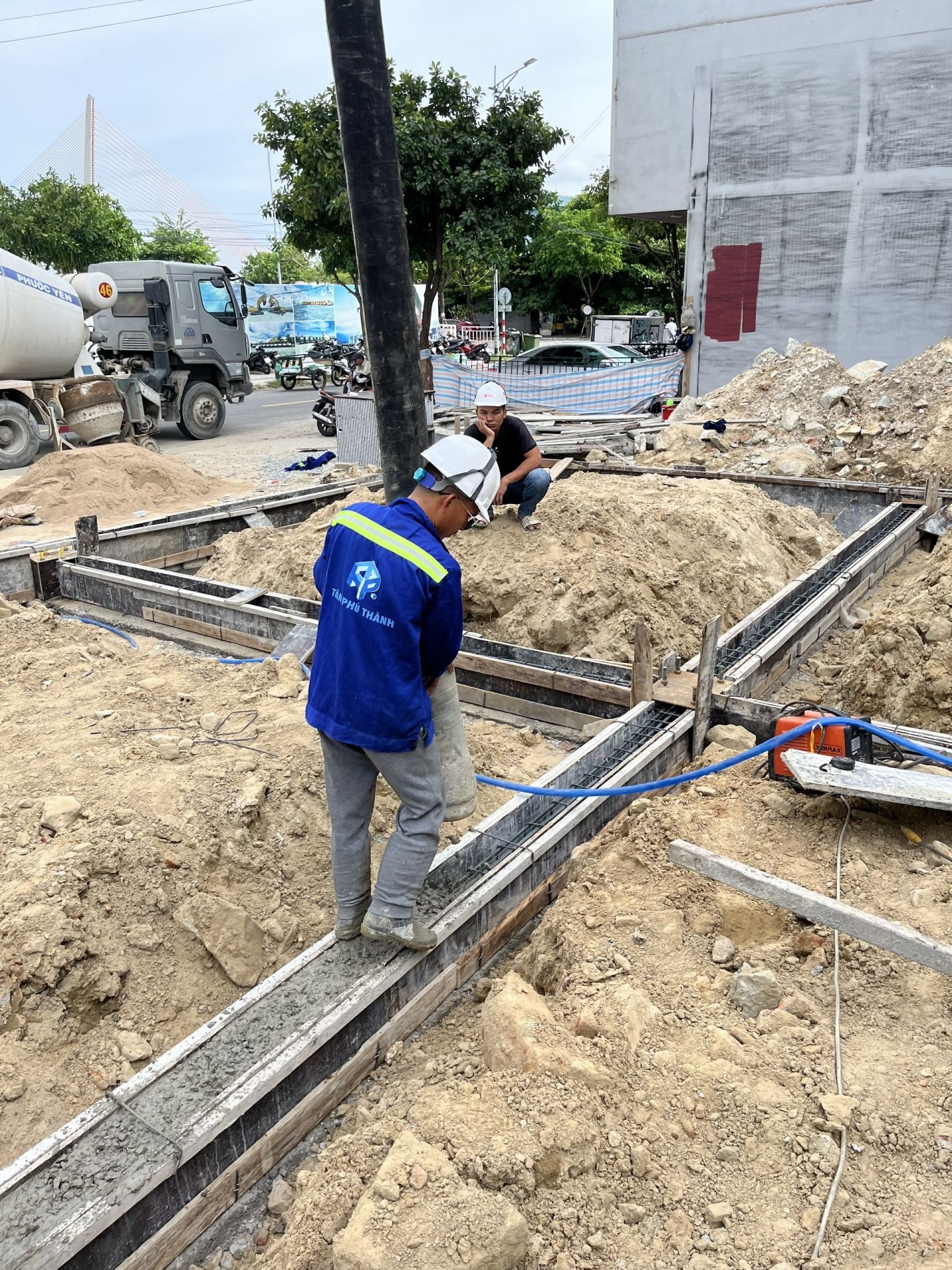 Bê tông đà kiềng (đã lắp đặt bu lung liên kết trước khi đổ bê tông)